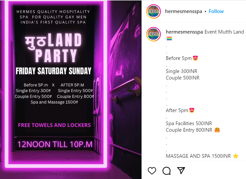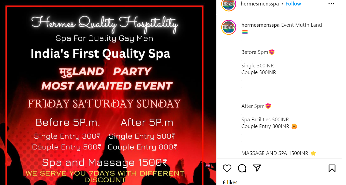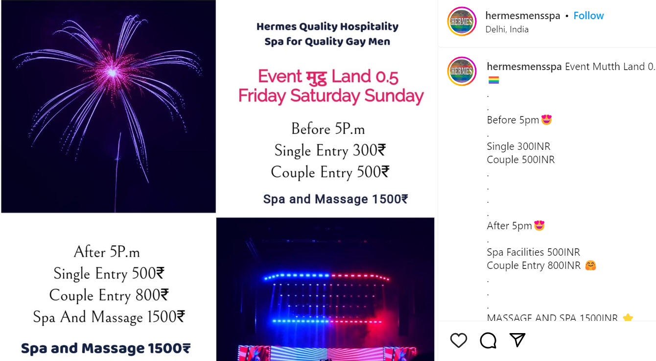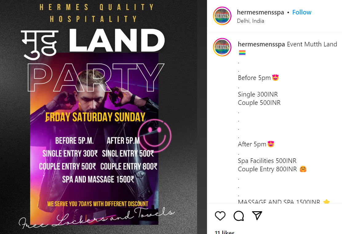 As discussed in the previous post, Delhi is witnessing a spike in the number of establishments offering gay sex for a fee. Flesh markets like these are openly advertised across the web with impunity. E-invites like the ones shared below are widely shared by organisers and attendees alike. And yet, the Delhi Police is yet to do anything.